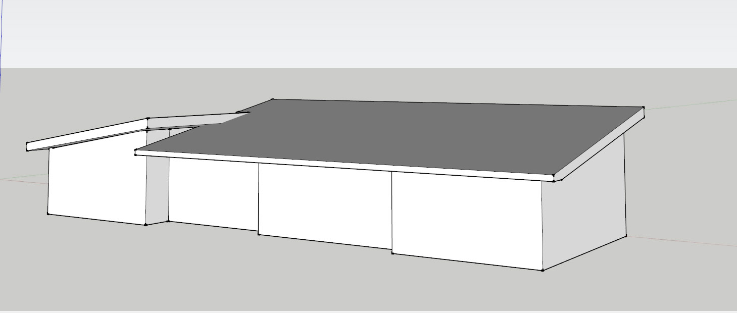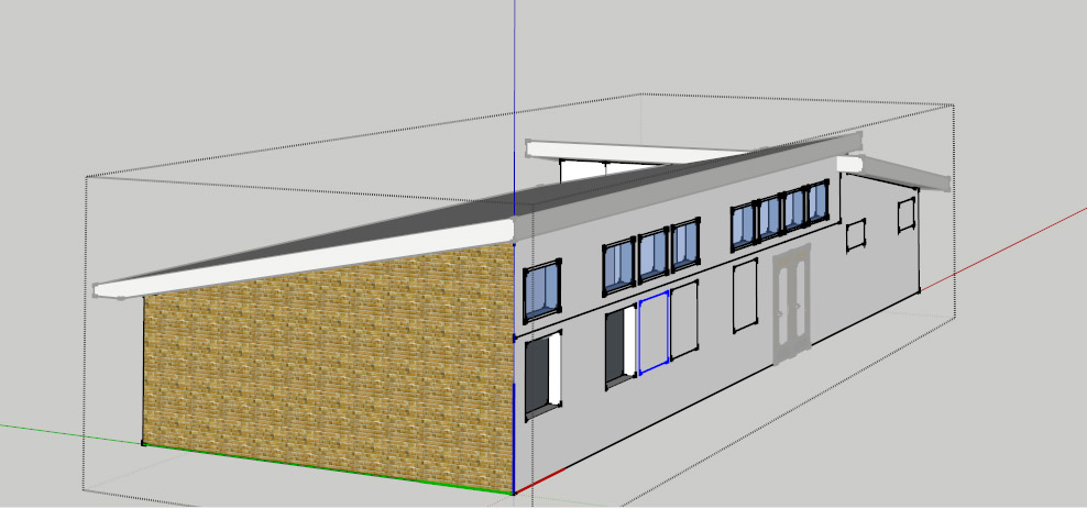 Here is a a photo of the current South-facing side and a couple of quick concept sketchups of the new roofline and windows.