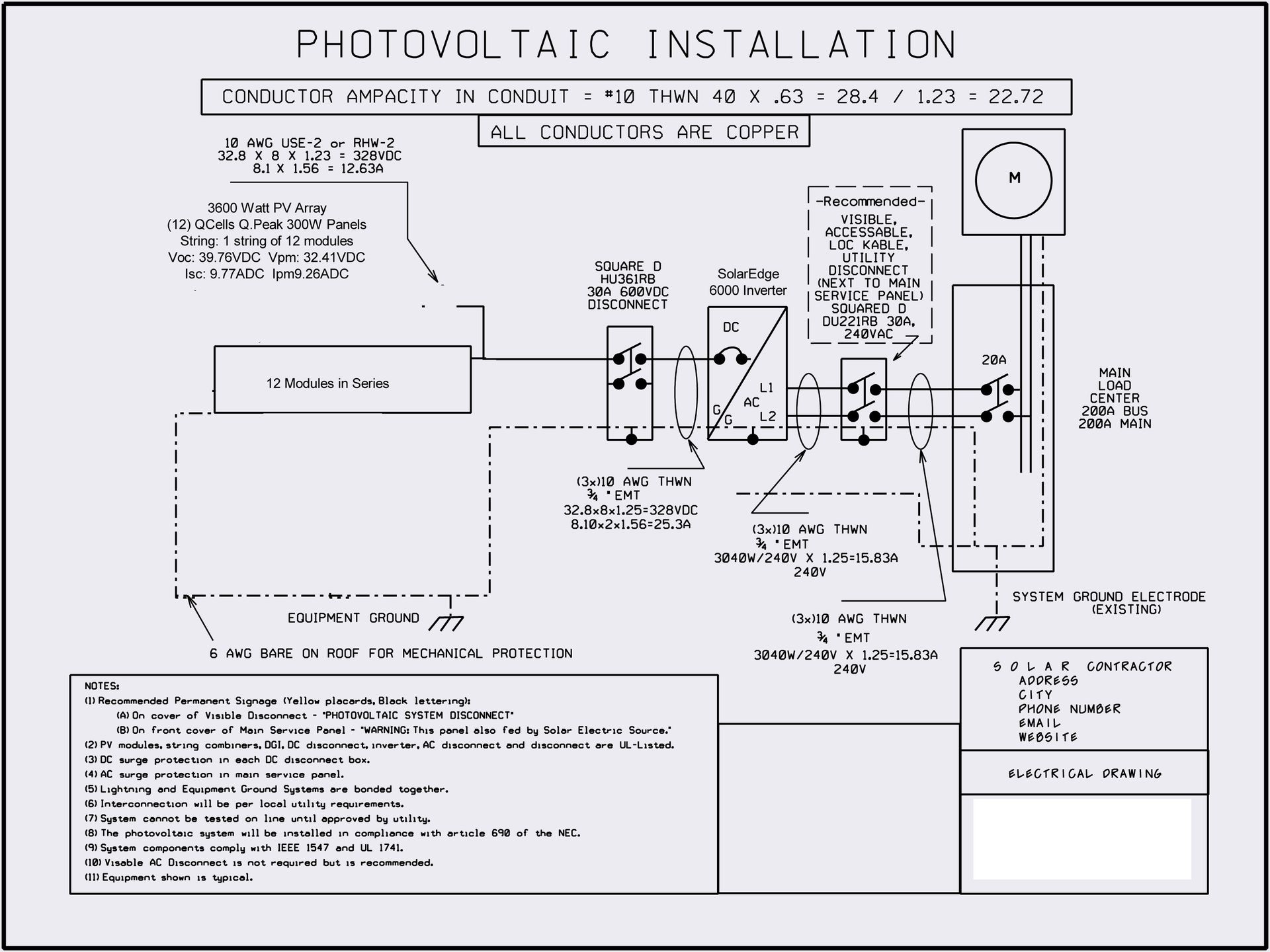 Great questions….Offsite is not too bad, the inverter doesn’t have to be adjacent to the panels and depending on your climate can easily be outside. Heat is the biggest degrading factor on the inverter’s efficiency so a shaded location is perfect. To calculate the size of wire from the panels to the inverter I used the company (Alt E) that I bought the panels from. They also provided a basic wiring diagram for the permitting process. You can also do the math yourself and they (Alt E) have some very detailed videos to help. Basically, you need the percent loss your are willing to accept (I used 1%), max average temp (+10 degrees) of the site, the distance and the amperage of the array and the max voltage…..For example my Vmax was 450 at 9amps running 200′ in Florida (I think I used 31 degrees C ) and ended up with 8 AWG copper. Not cheap but easy enough.